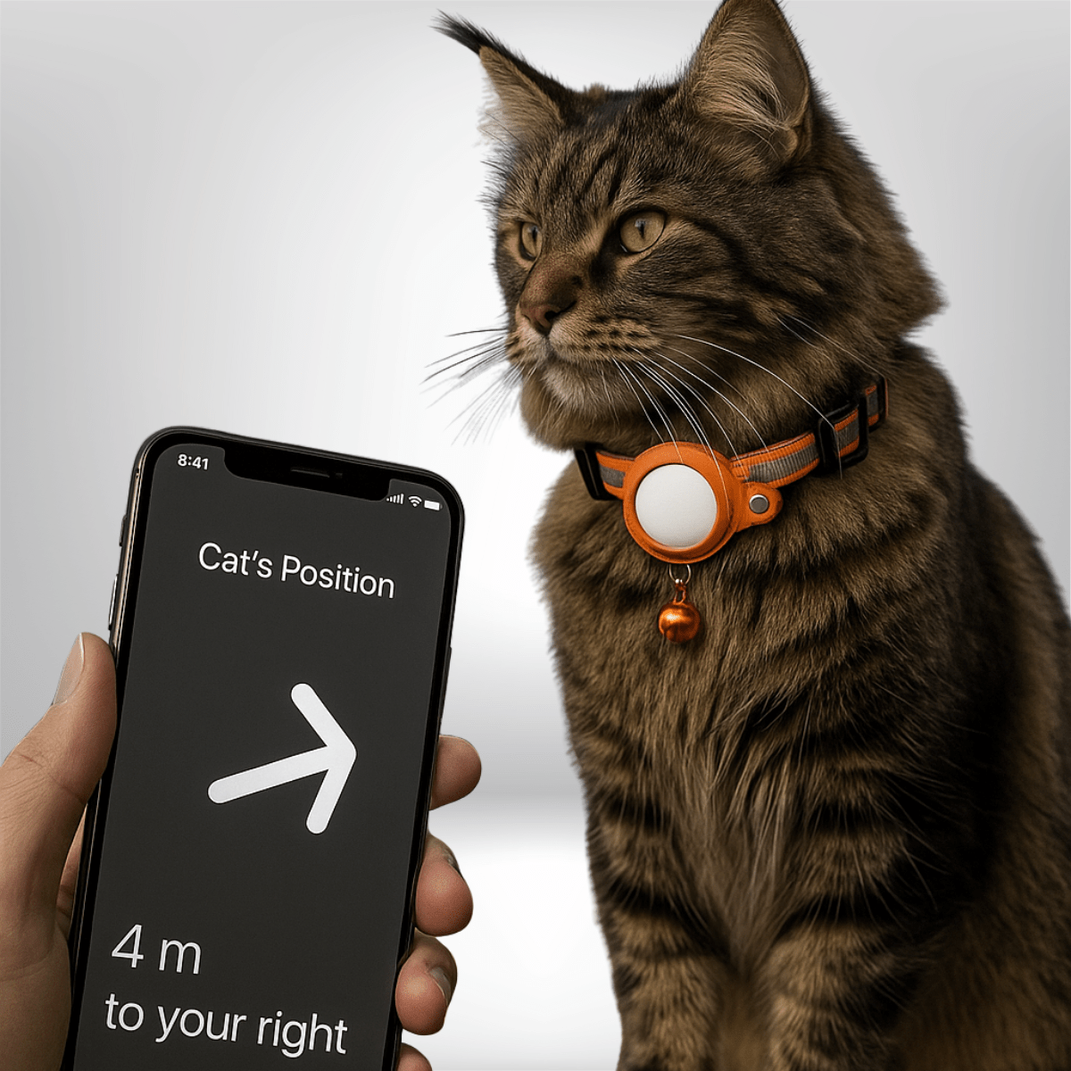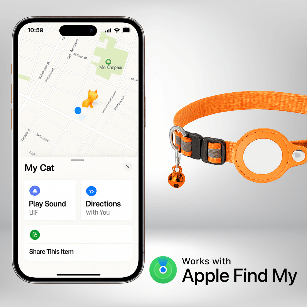 The TechnuPet Mini GPS Tracker connects with Apple Find My so you can always know where your cat is.